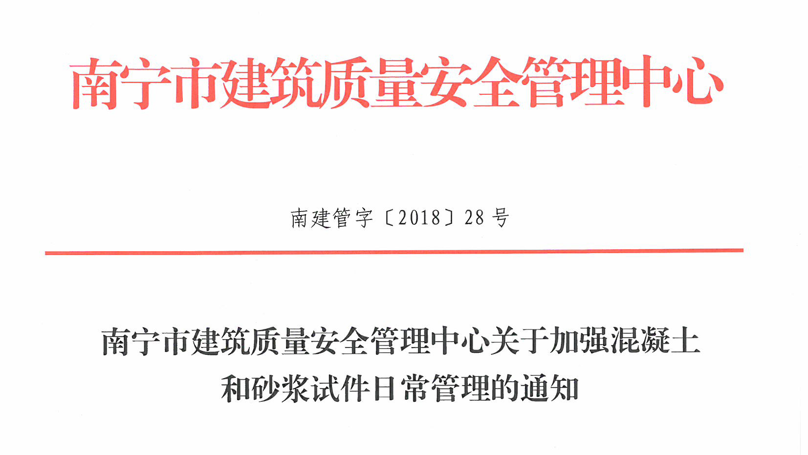 • 南寧市建筑質(zhì)量安全管理中心關(guān)于加強(qiáng)混凝土和砂漿試件日常管理的通知